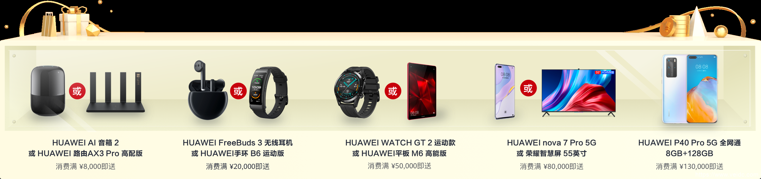| 50,000 | HUAWEI WATCH GT 2 运动款 华为智能手表(颜色随机) | 或华为平板 M6 8.4英寸智能平板电脑 6GB+128GB WiFi(颜色随机) |
