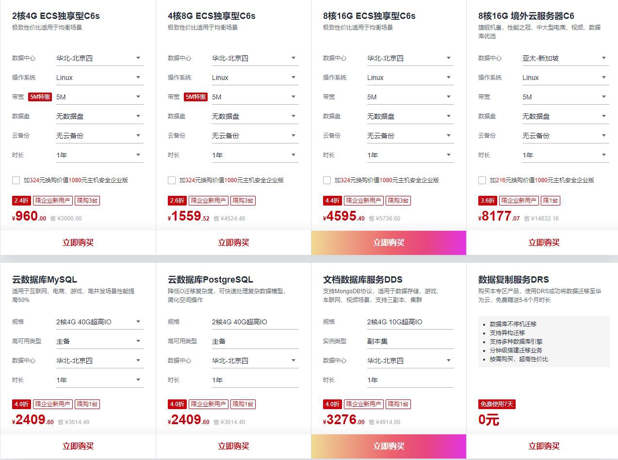 马上就到2020年双十二了,各大电商纷纷拿出杀手锏吸引消费者,目前华为云推出2020年“12.12会员节”年终回馈活动,会员多重豪礼上云特惠,活动期间2核4G内存5M带宽云服务器486元/年起;企业用户享万元服务权益;续费立减1500元;新购消费满额送华为P40 Pro等实物礼品等等。