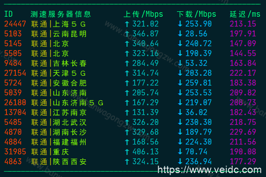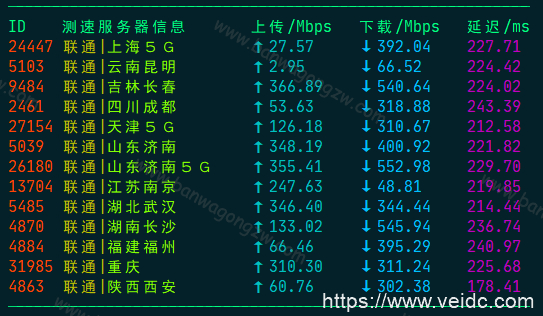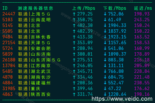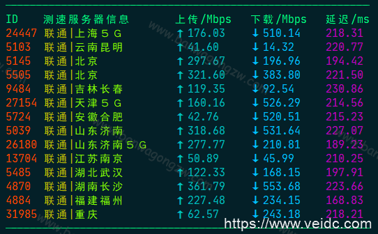 二、联通网络下搬瓦工机房速度测试