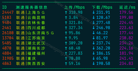 以下是联通网络下的搬瓦工各个机房的速度测试结果。从测试结果上看,DC6 CN2 GIA-E和DC9 CN2 GIA机房的速度都非常快,其次是DC3 CN2、DC2 QNET、DC4 MCOM、DC8 ZNET机房。按套餐来讲,速度快慢为:搬瓦工CN2 GIA-E=搬瓦工CN2 GIA>搬瓦工CN2=搬瓦工KVM。