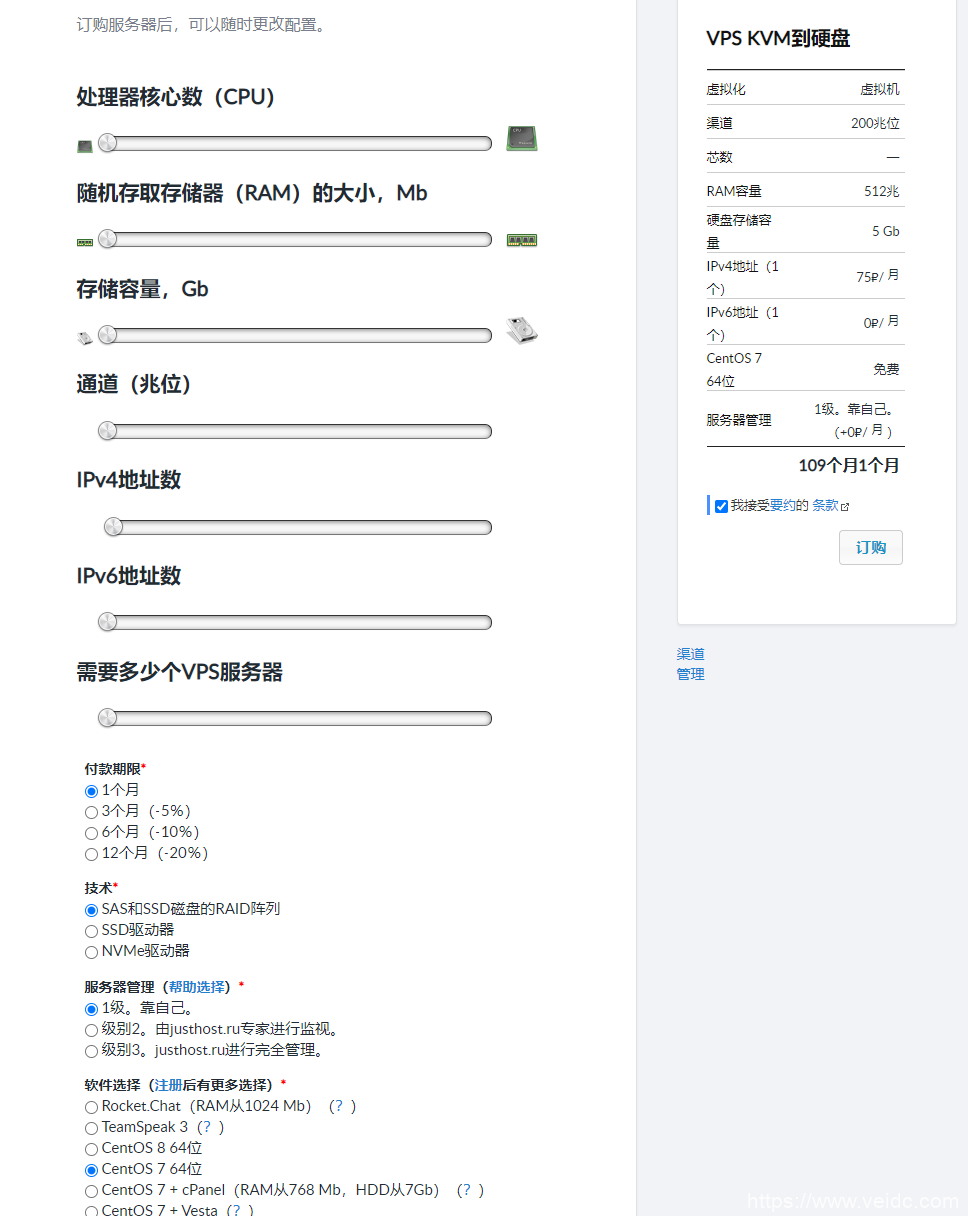 登录之后,进入控制面板,选择左侧的“vps”即可选配进行购买,如图: