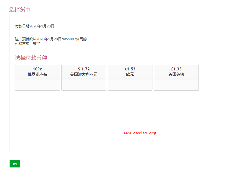 109卢布也大概是9.8255人民币,点击订货,进入下个页面,如图: