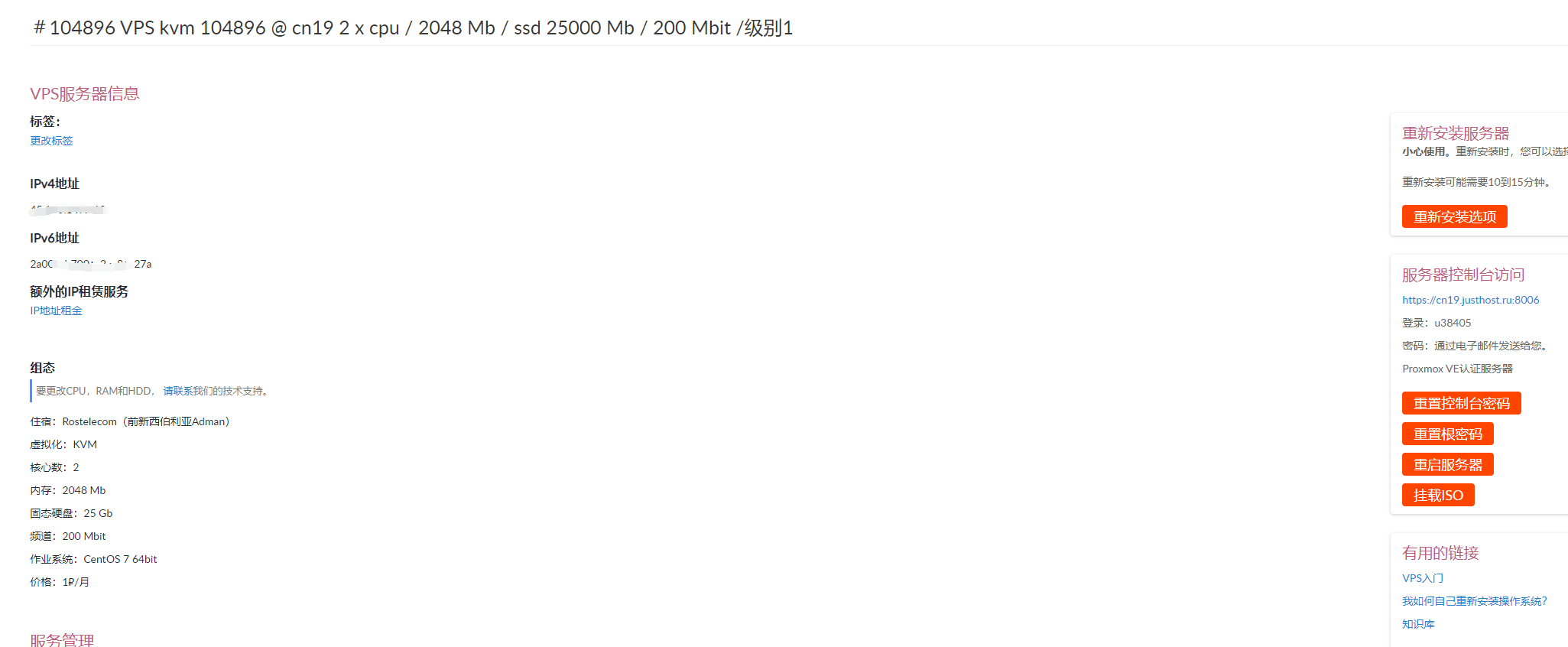 这家还提供了vps的管理平台,我们在管理页面可以看到网址以及用户名,密码在发送给你的邮件中,登录过程和界面:
