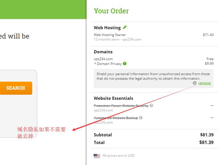 其中域名隐私如果不需要是可以去掉的,一般这个没有什么用,如下图所示: