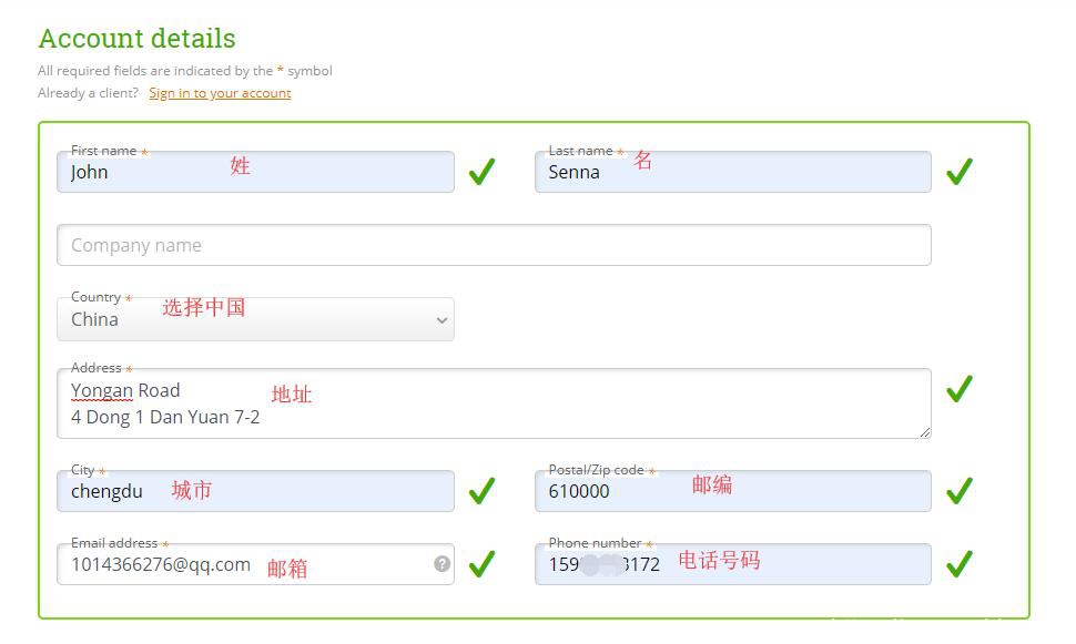 然后输入用户相关信息,最好用英文字母,除了邮箱,其他都可以不用输入真实信息,如下图所示: