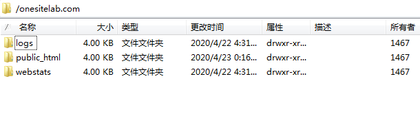 登录以后,我们首先看到的是一个以网站域名为名称的文件夹,点击改文件夹会看到下图所示,其中publick_html文文件夹就是我们网站的根目录所在。