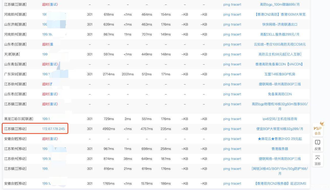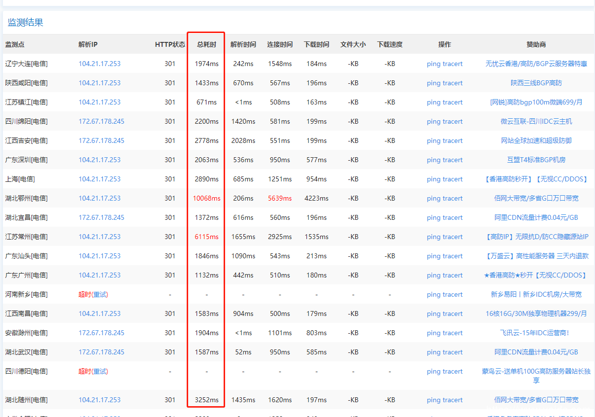 除了标红的一个地址dns解析还没生效,其余已经生效的IP速度明显都在2秒以内打开。
