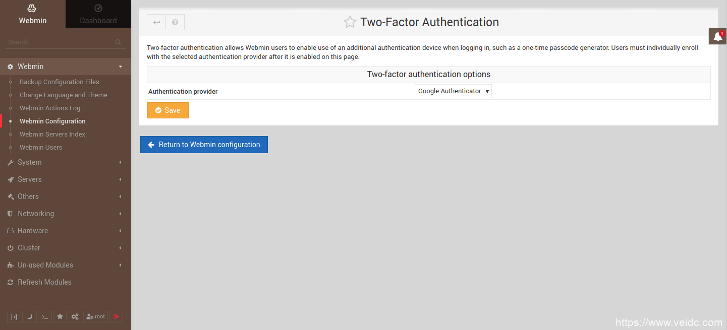 为了帮助保护您的Webmin服务器,必须进行两步验证,也称为2FA。我强烈建议启用它。