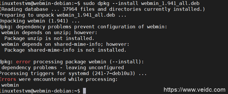sudo dpkg --install ~/webmin_1.941_all.deb