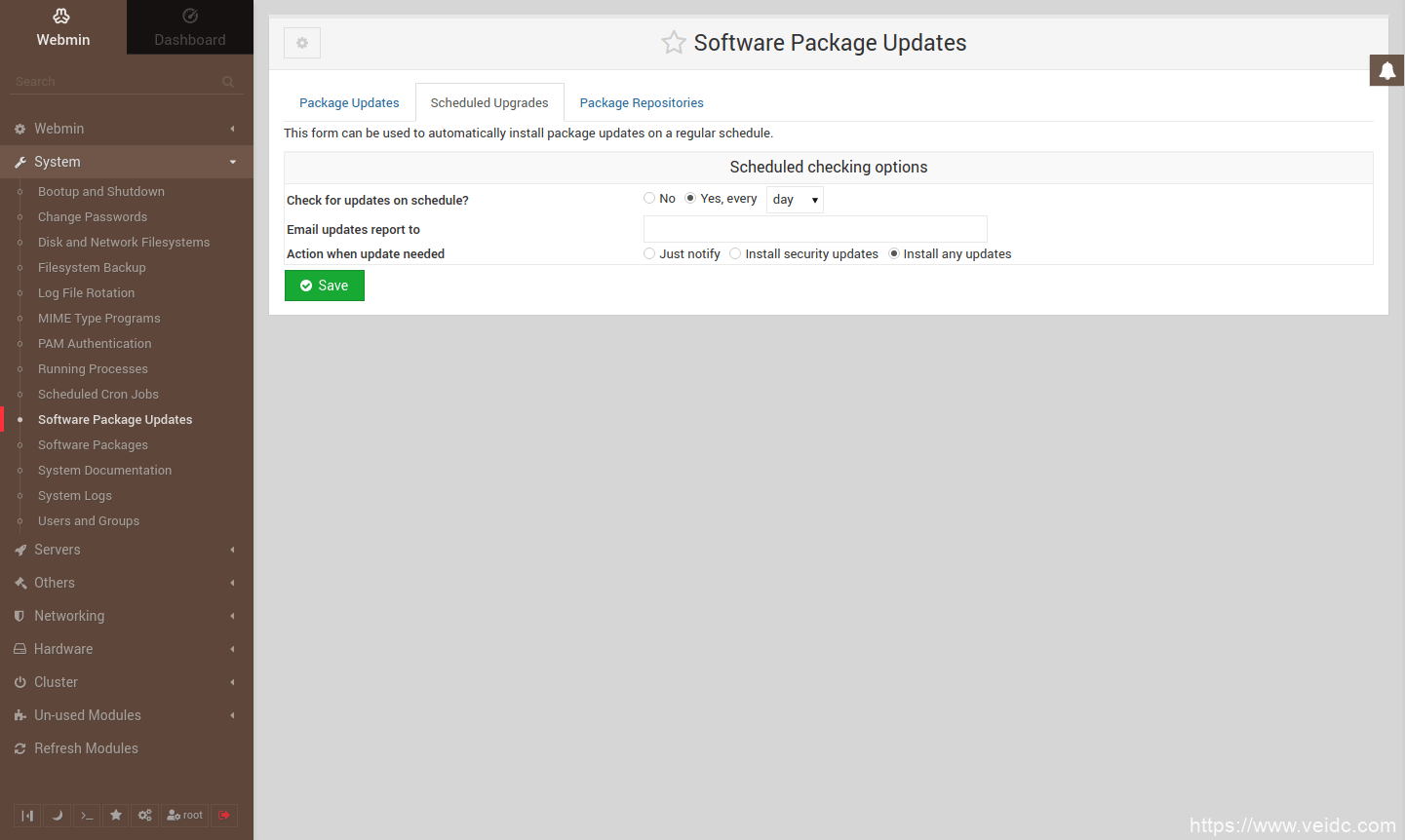 您应该确认已启用计划。然后,Webmin将自动使您的服务器保持最新状态。