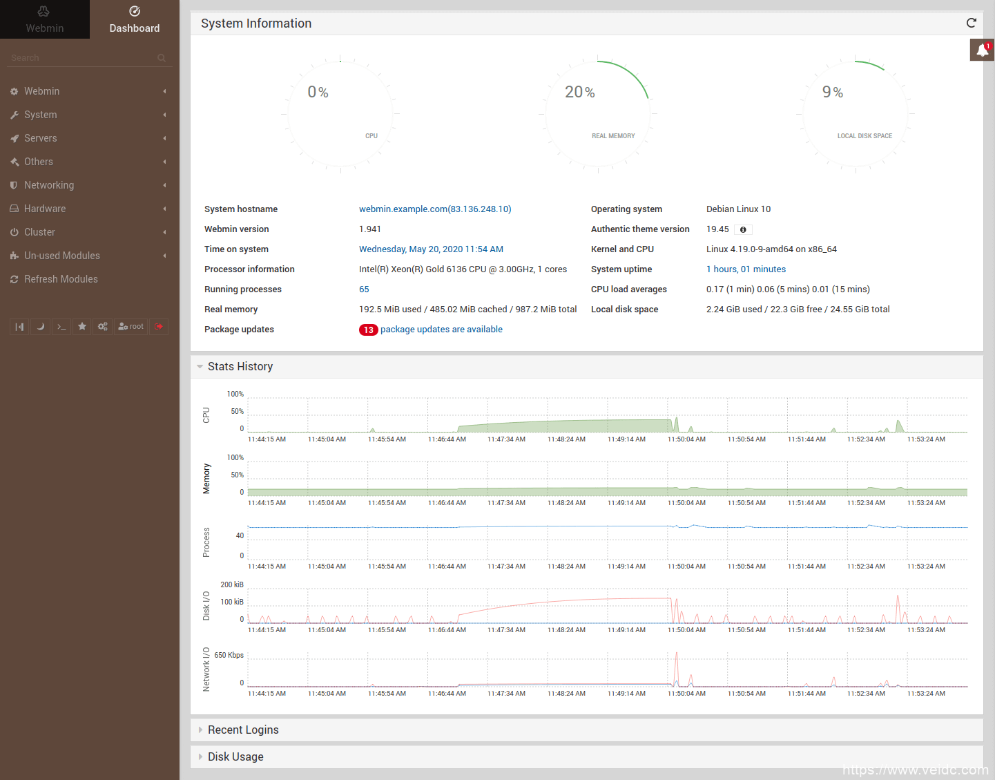 访问Webmin仪表板
