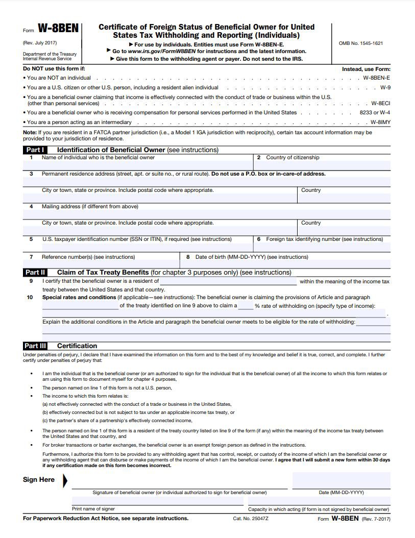 本指南请参考 IRS W-8BEN表格说明与本指南配合使用。如果以下说明与IRS网站之间存在差异,则以IRS网站为准。