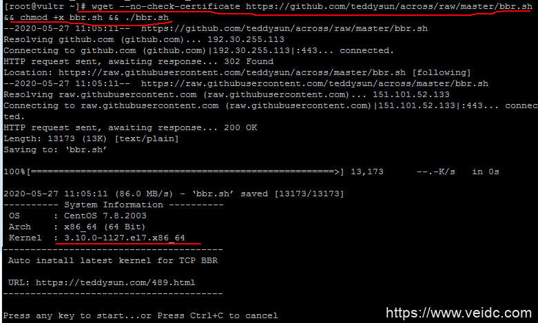 wget –no-check-certificate https://github.com/teddysun/across/raw/master/bbr.sh && chmod +x bbr.sh && ./bbr.sh