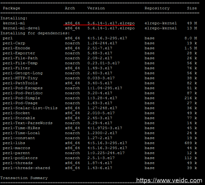 2、按回车键之后等个几分钟,安装成功后就会会看到新的内核,如下图所示,内核从安装前的3.10.0变成最高5.6.14版本,这样就可以安装BBR加速。