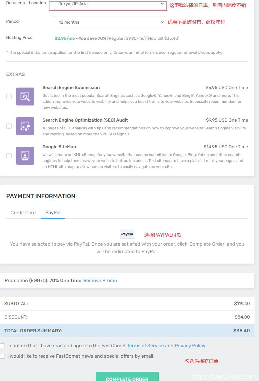 前文国外主机测评为大家详细的介绍 FastComet,详情见:FastComet主机超级复活节特卖:日本主机/美国等全球10大数据中心cPanel共享主机/外贸主机年付低至35刀,赠送免费域名转入。此文就讲解下新手朋友应该如果购买 FastComet日本cPanel主机,购买其它地区的也是差不多的,通过本教程,就算不懂英文的朋友也能轻松购买FastComet 的各种套餐。