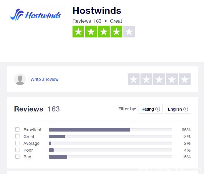 再比如全球最大的消费者评论网站—— trustpilot.com 对 hostwinds 的评分也很高: