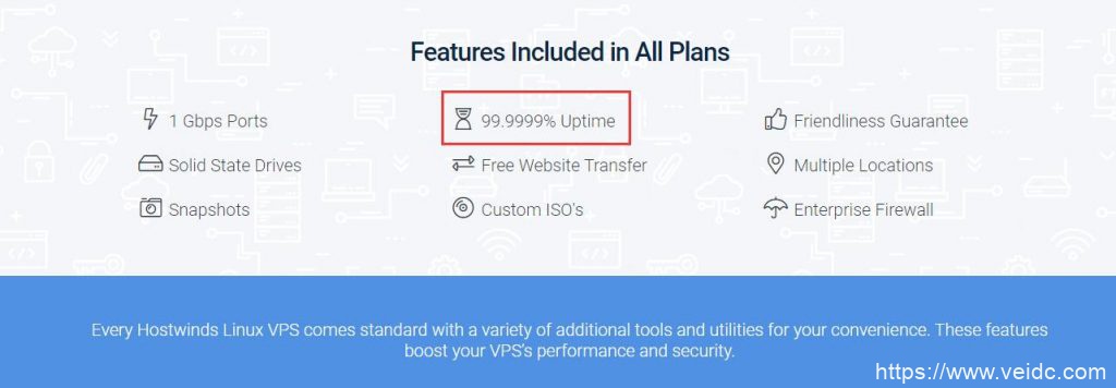 hostwinds 本身的硬件配置很给力,官方承诺在线率 99.9999%。