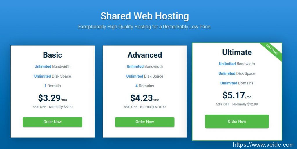 提供无限流量,无限存储空间,无限FTP账户,无限 Mysql 库,无限电子邮件账户,免费网站迁移,免费SSL证书。