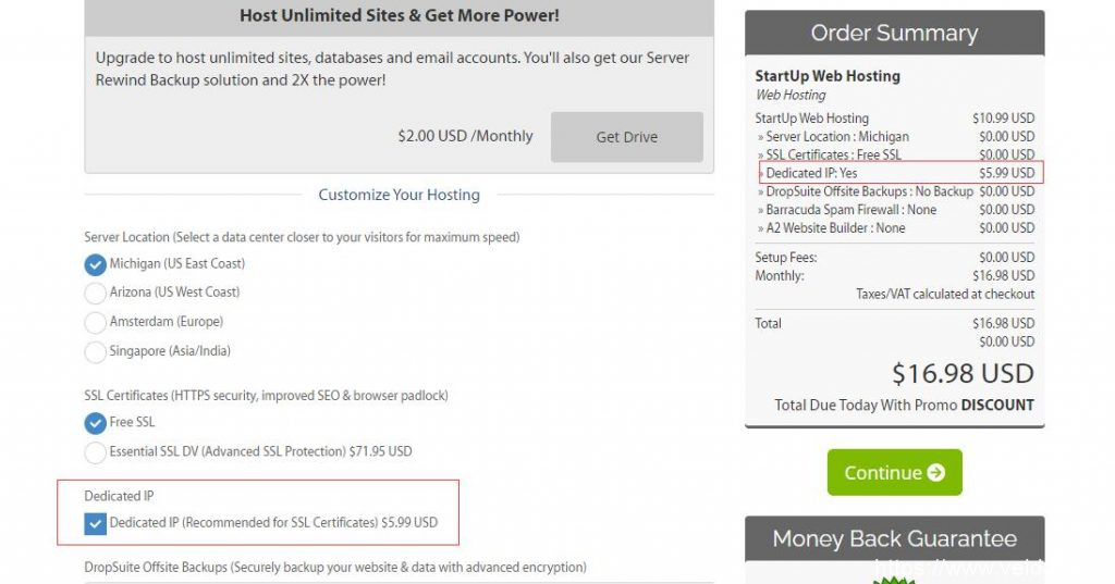 要知道,大部分国外主机商的产品线如果包括共享主机,都是提供的共享ip,个别主机商的共享主机虽然也可以提供独立ip,但是需要另外加钱,比如 a2hosting 的共享主机,如果想使用独立ip,需要另外付费5.99美元。