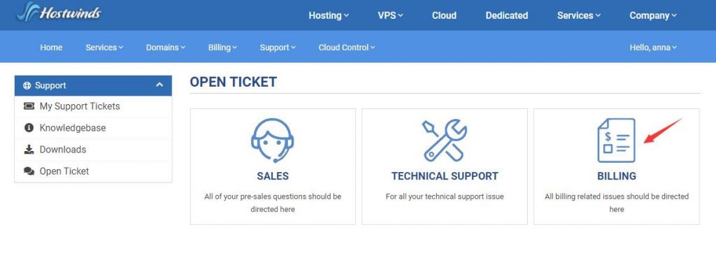 然后通过 billing 提交工单: