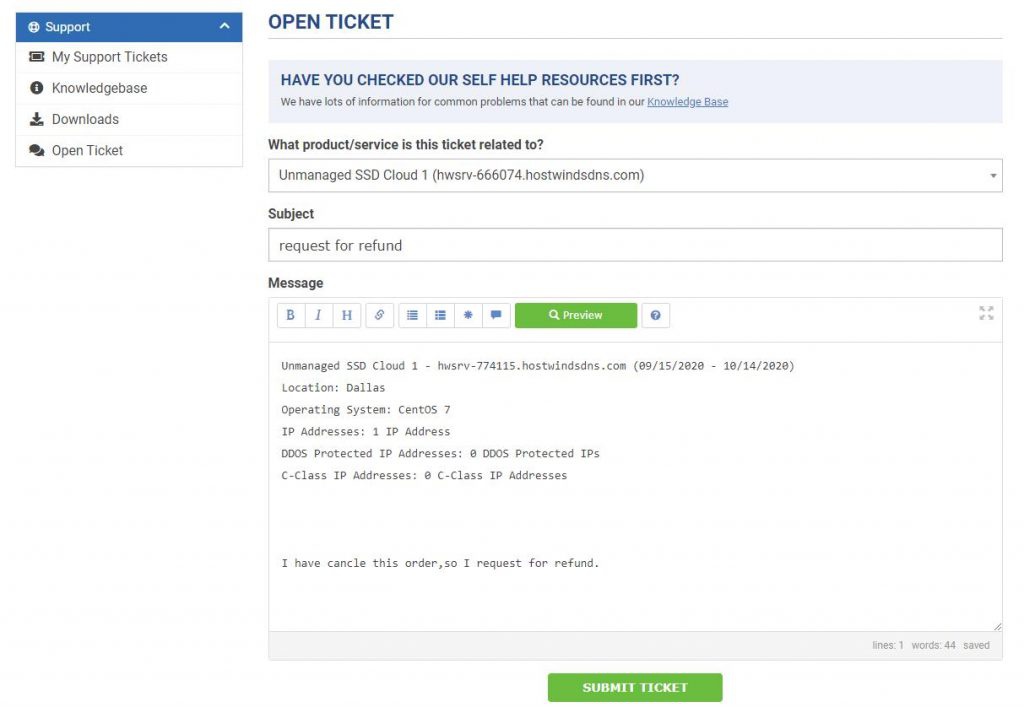 11、申请退款不墨迹;Hostwinds 毕竟是大厂,所以只要按照正确的退款流程申请退款,次日就会退款成功,我专门申请退款测试过:
