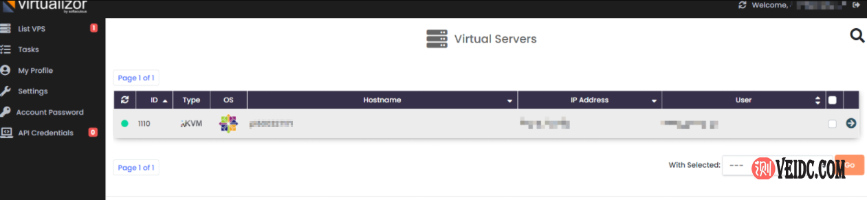 3、点击之后等待页面加载,一会就会加载完成,这样就会进入Virtualizor面板,无需输入用户名和密码信息,下图是Virtualizor面板首页界面图示: