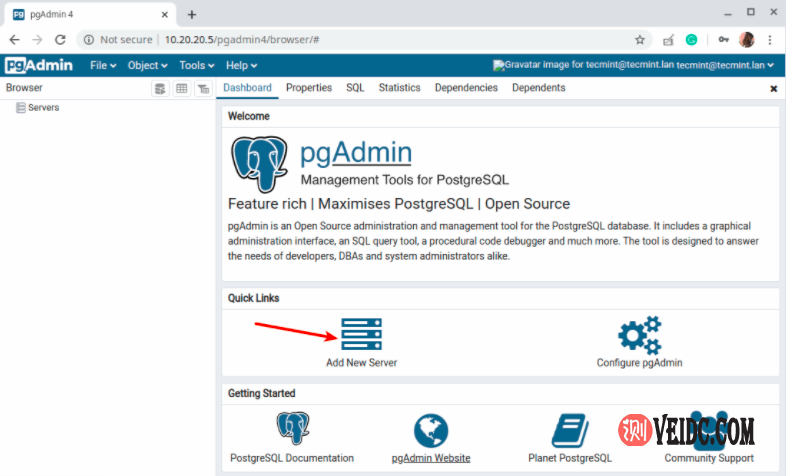步骤5:访问pgAdmin Web界面