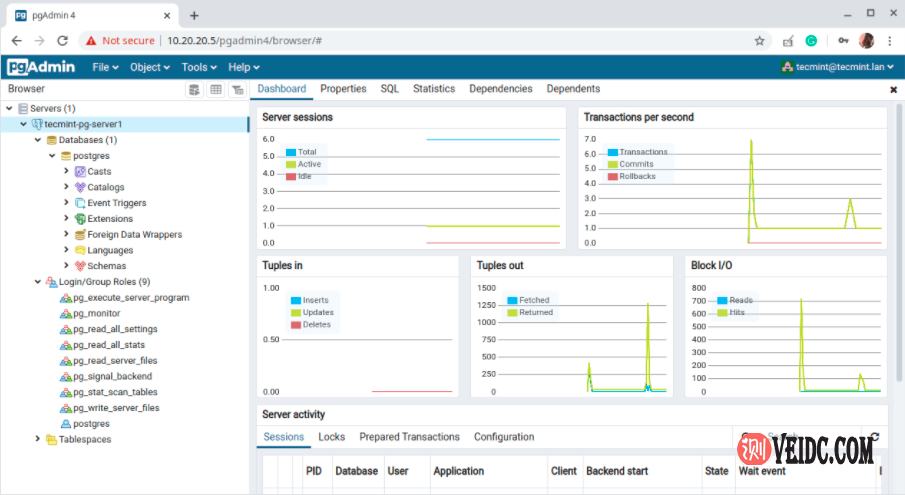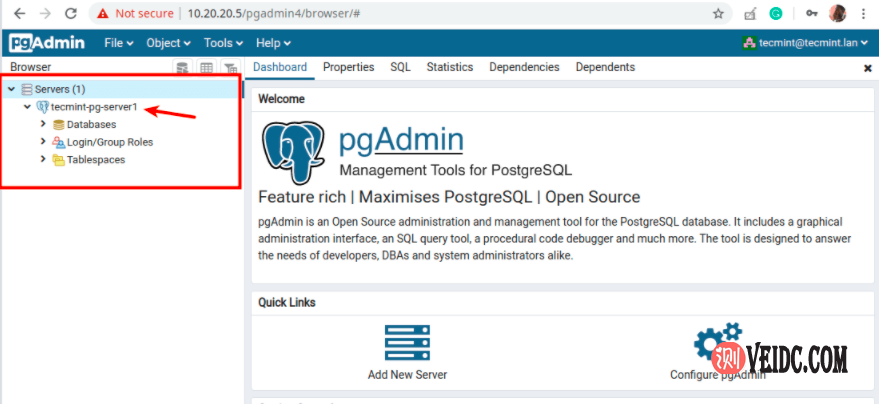 通过以上设置过程,现在已经在CentOS 8系统中成功安装了Postgresql 12和pgAdmin 4,有不清楚的小伙伴可以参考上述过程进行设置。
