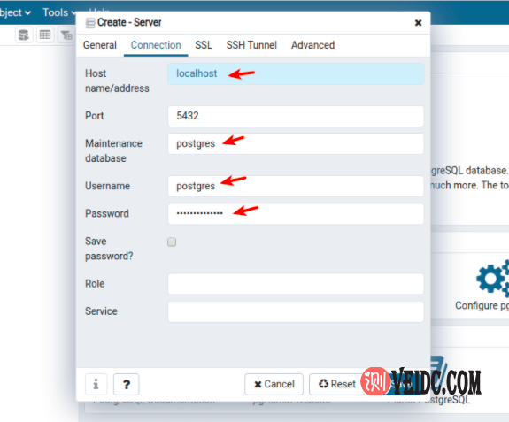 - Host– PostgreSQL服务器的主机/ IP地址。