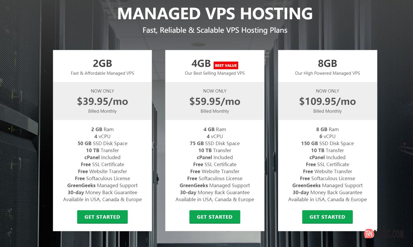 GreenGeeks提供了2G、4G、8G内存的三个套餐服务,最低价格39.95美元/月。