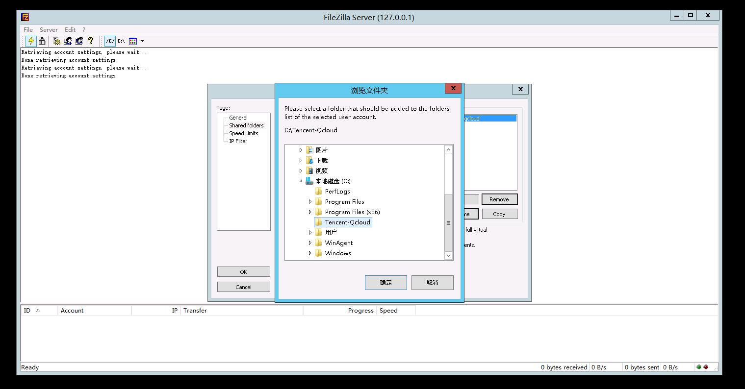 选择要用作FTP资源的目录(本例使用已新建的Tencent-Qcloud目录),点击【确定】: