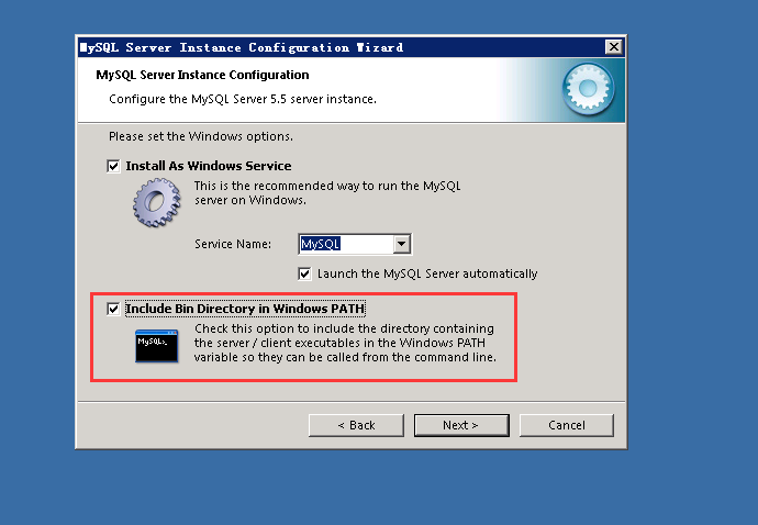 设置运行方式(建议两种都选择上以便使用命令行管理MySQL):
