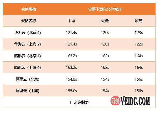 这里我们看到,三家云服务商中,华为云S6服务器连接速度较快,整体文件下载也优于另外两家。当然,本身这一测试存在网络的因素,但是各家网络相对而言都是非常稳定的。