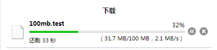 安徽移动100M文件下载速度测试,大概在30kb/s左右,电信线路可能会快不少: