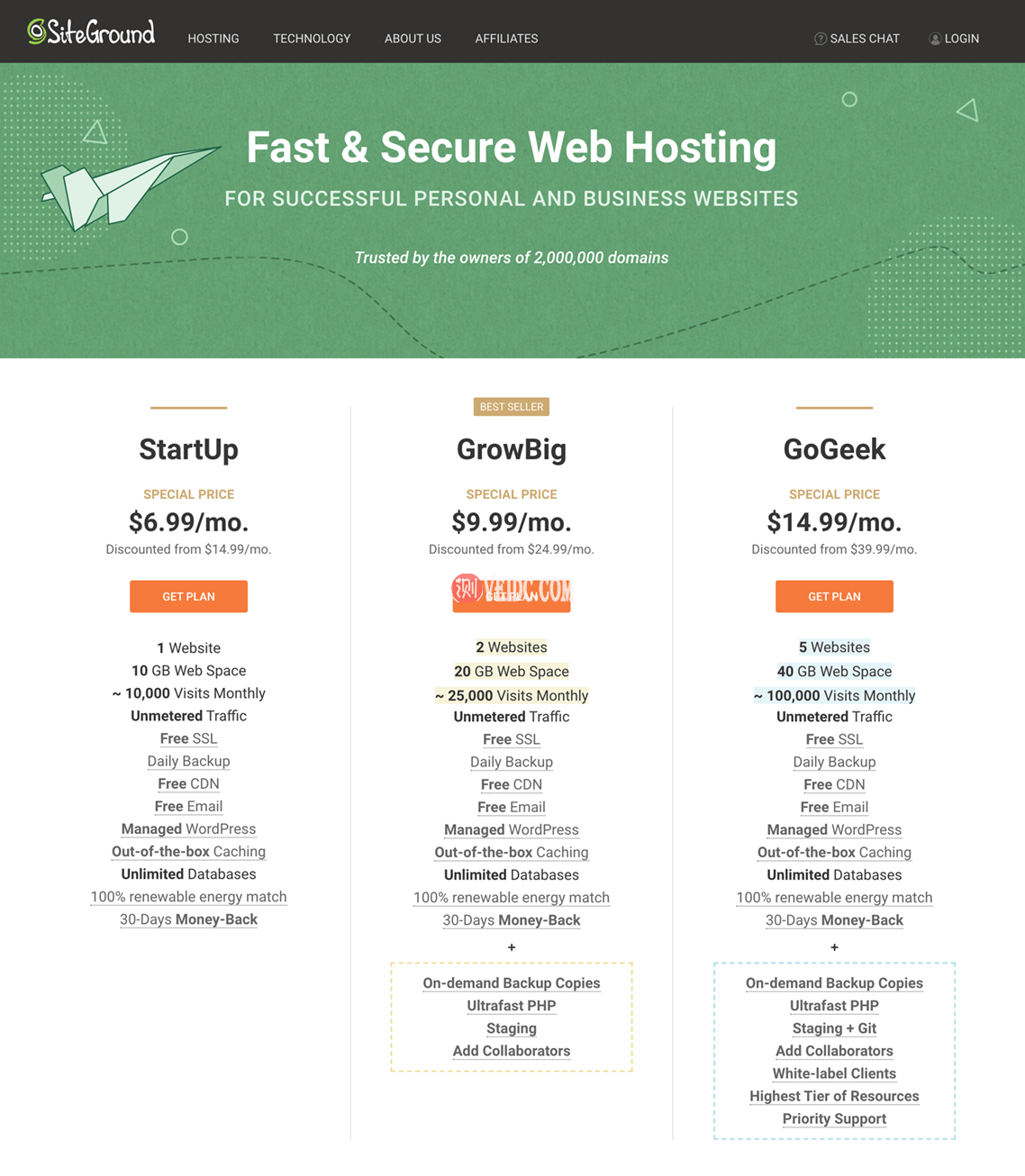 SiteGround套餐介绍