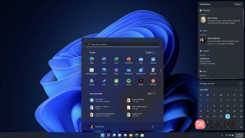 Windows 负责人 Panos Panay 表示,“团队对每一个细节都很着迷”。Windows 11 还将包括更新的黑暗和明亮模式,比我们今天在 Windows 中看到的要好很多。