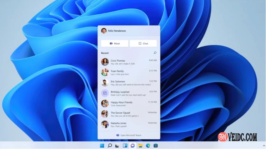 微软还将 Microsoft Teams 直接整合到 Windows 11 中,供消费者和商业用户使用。Teams 被直接整合到任务栏中,允许 Windows 11 用户给朋友、家人或同事打电话。很明显,这是对 Skype 来说是一个重大转变,Skype 是捆绑在 Windows 10 的一部分。