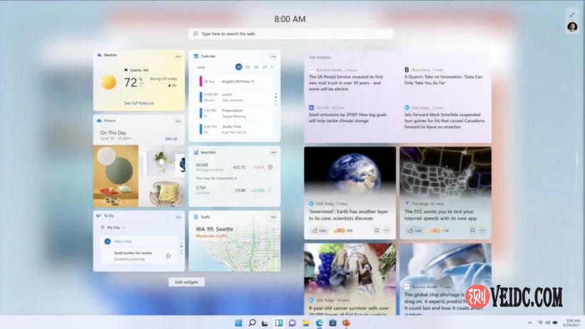 Windows 小组件和触摸手势也是 Windows 11 的重要组成部分。小组件是个性化的,由 AI 人工智能驱动,它建立在我们已经看到微软在 Windows 10 中引入的小工具上。它从 Windows 11 的左侧滑入,你也可以让它全屏显示。内置的小组件包括新闻提要、天气和地图。
