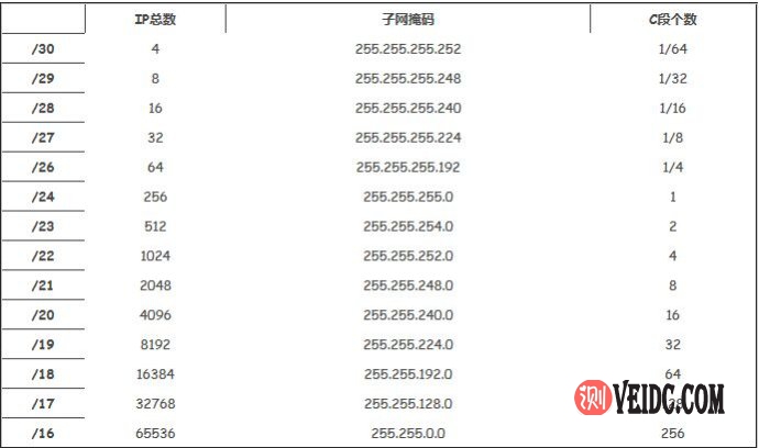 我们很多小伙伴在租用美国服务器或其它独服时,网站介绍都是写着/29 /28 /27 /26 /25 /24,他们代表什么呢?多少个可用IP呢?