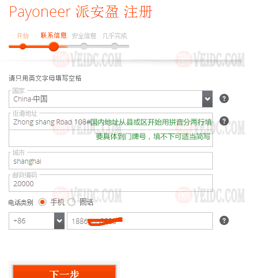 电邮地址:您将使用此电子邮箱登录后台帐户并用其与Payoneer客服沟通;