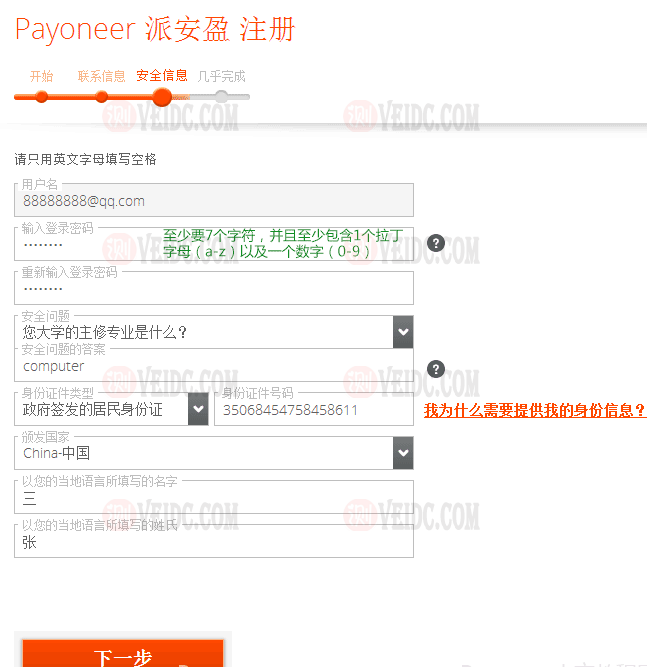 根据相关金融监管政策,Payoneer要求用户提供真实信息,这将保障您今后顺利安全地使用Payoneer的服务;