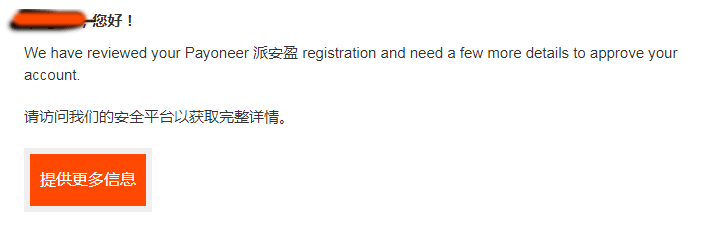 如果超过1天没有通过审核,很有可能是没有通过系统自动审核,请留意邮件,需要补充材料(一般需要额外提供身份证正反面的照片)。如下图,直接点击“提供更多信息”,到网站补充信息即可。