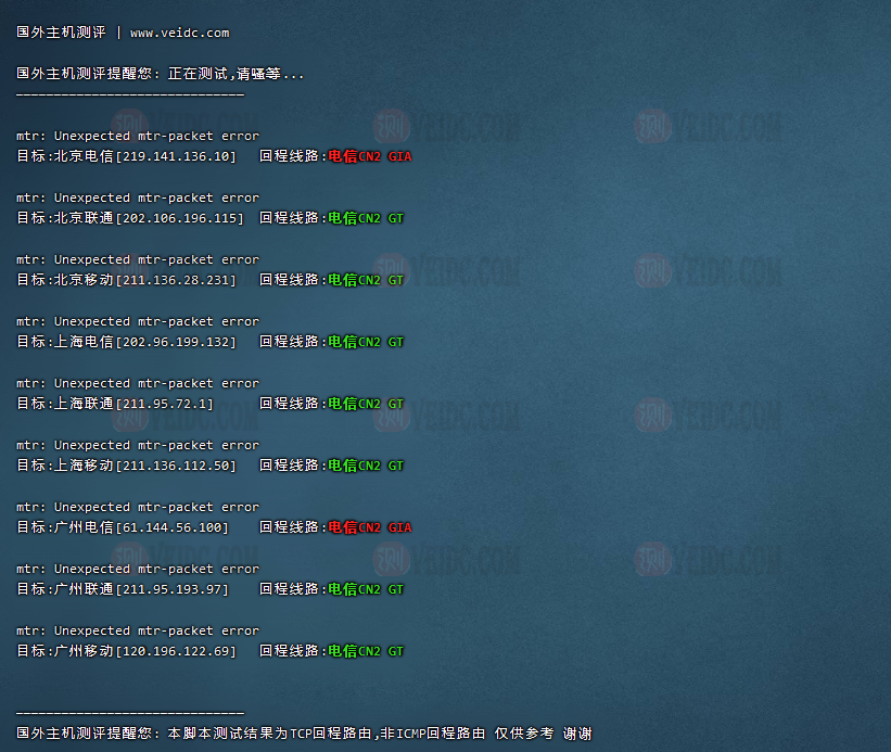 这个比较操蛋,BestTrace限制的原因,看不到IP地理信息,会看的查看IP头就知道线路情况了。