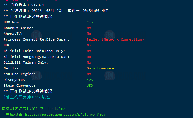 [Info] 测试路由 到 上海电信(天翼云) 中 ... traceroute to 101.227.255.45 (101.227.255.45), 30 hops max, 32 byte packets 1 10.2.46.1 0.17 ms * 局域网 2 96.44.178.209.static.quadranet.com (96.44.178.209) 0.39 ms AS8100 美国, 加利福尼亚州, 洛杉矶, quadranet.com 3 96.44.175.32.static.quadranet.com (96.44.175.32) 0.62 ms AS8100 美国, 加利福尼亚州, 洛杉矶, quadranet.com 4 218.30.48.145 13.11 ms AS4134 美国, 加利福尼亚州, 洛杉矶, chinatelecom.com.cn, 电信 5 59.43.189.33 128.02 ms * 中国, 上海, chinatelecom.com.cn, 电信 6 * 7 202.97.51.242 139.33 ms AS4134 中国, 上海, chinatelecom.com.cn, 电信 8 202.97.50.169 150.21 ms AS4134 中国, 上海, chinatelecom.com.cn, 电信 9 * 10 124.74.166.138 132.75 ms AS4812 中国, 上海, chinatelecom.com.cn, 电信 11 * 12 * 13 * 14 * 15 * 16 * 17 * 18 * 19 * 20 * 21 * 22 * 23 * 24 * 25 * 26 * 27 * 28 * 29 * 30 * [Info] 测试路由 到 上海电信(天翼云) 完成 ! [Info] 测试路由 到 厦门电信CN2 中 ... traceroute to 117.28.254.129 (117.28.254.129), 30 hops max, 32 byte packets 1 10.2.46.1 0.29 ms * 局域网 2 96.44.178.209.static.quadranet.com (96.44.178.209) 29.69 ms AS8100 美国, 加利福尼亚州, 洛杉矶, quadranet.com 3 96.44.175.32.static.quadranet.com (96.44.175.32) 0.51 ms AS8100 美国, 加利福尼亚州, 洛杉矶, quadranet.com 4 218.30.48.145 0.76 ms AS4134 美国, 加利福尼亚州, 洛杉矶, chinatelecom.com.cn, 电信 5 59.43.189.33 129.83 ms * 中国, 上海, chinatelecom.com.cn, 电信 6 59.43.246.213 128.48 ms * 中国, 上海, chinatelecom.com.cn, 电信 7 59.43.138.53 130.98 ms * 中国, 上海, chinatelecom.com.cn, 电信 8 59.43.138.186 152.15 ms * 中国, 福建, chinatelecom.com.cn, 电信 9 * 10 27.148.195.2 151.29 ms AS133775 中国, 福建, 厦门, chinatelecom.com.cn, 电信 11 117.25.141.110 147.34 ms AS133775 中国, 福建, 厦门, chinatelecom.com.cn, 电信 12 117.28.254.129 163.85 ms AS4809 中国, 福建, 厦门, chinatelecom.com.cn, 电信 [Info] 测试路由 到 厦门电信CN2 完成 ! [Info] 测试路由 到 浙江杭州联通 中 ... traceroute to 101.71.241.238 (101.71.241.238), 30 hops max, 32 byte packets 1 10.2.46.1 0.25 ms * 局域网 2 96.44.178.209.static.quadranet.com (96.44.178.209) 0.62 ms AS8100 美国, 加利福尼亚州, 洛杉矶, quadranet.com 3 96.44.175.32.static.quadranet.com (96.44.175.32) 0.52 ms AS8100 美国, 加利福尼亚州, 洛杉矶, quadranet.com 4 96.44.163.152.static.quadranet.com (96.44.163.152) 0.60 ms AS8100 美国, 加利福尼亚州, 洛杉矶, quadranet.com 5 china.unicom (204.152.204.2) 0.89 ms AS8100 美国, 加利福尼亚州, 洛杉矶, quadranet.com 6 207.254.191.89 8.00 ms AS19174 美国, 加利福尼亚州, 洛杉矶, chinaunicom.com, 联通 7 219.158.16.97 143.87 ms AS4837 中国, 北京, chinaunicom.com, 联通 8 219.158.5.198 169.03 ms AS4837 中国, 上海, chinaunicom.com, 联通 9 219.158.113.134 174.54 ms AS4837 中国, 上海, chinaunicom.com, 联通 10 219.158.113.105 167.19 ms AS4837 中国, 上海, chinaunicom.com, 联通 11 219.158.115.146 171.73 ms AS4837 中国, 浙江, 杭州, chinaunicom.com, 联通 12 101.71.244.94 174.56 ms AS4837 中国, 浙江, 杭州, chinaunicom.com, 联通 13 * 14 * 15 * 16 * 17 * 18 * 19 * 20 * 21 * 22 * 23 * 24 * 25 * 26 * 27 * 28 * 29 * 30 * [Info] 测试路由 到 浙江杭州联通 完成 ! [Info] 测试路由 到 浙江杭州移动 中 ... traceroute to 112.17.0.106 (112.17.0.106), 30 hops max, 32 byte packets 1 10.2.46.1 0.23 ms * 局域网 2 96.44.178.209.static.quadranet.com (96.44.178.209) 0.40 ms AS8100 美国, 加利福尼亚州, 洛杉矶, quadranet.com 3 96.44.175.32.static.quadranet.com (96.44.175.32) 3.22 ms AS8100 美国, 加利福尼亚州, 洛杉矶, quadranet.com 4 96.44.163.152.static.quadranet.com (96.44.163.152) 7.02 ms AS8100 美国, 加利福尼亚州, 洛杉矶, quadranet.com 5 223.119.64.245 1.01 ms AS58453 美国, 加利福尼亚州, 洛杉矶, chinamobile.com, 移动 6 223.120.6.17 0.75 ms AS58453 美国, 加利福尼亚州, 洛杉矶, chinamobile.com, 移动 7 223.120.13.46 180.30 ms AS58453 中国, 上海, chinamobile.com, 移动 8 221.183.55.34 182.85 ms AS9808 中国, 上海, chinamobile.com, 移动 9 221.183.25.193 182.87 ms AS9808 中国, 上海, chinamobile.com, 移动 10 221.183.23.25 177.78 ms AS9808 中国, 上海, chinamobile.com, 移动 11 111.24.3.89 177.32 ms AS9808 中国, 上海, chinamobile.com, 移动 12 111.24.3.30 193.82 ms AS9808 中国, 浙江, 杭州, chinamobile.com, 移动 13 * 14 * 15 218.205.87.13 195.69 ms AS56041 中国, 浙江, 杭州, chinamobile.com, 移动 16 * 17 * 18 * 19 * 20 * 21 * 22 * 23 * 24 * 25 * 26 * 27 * 28 * 29 * 30 * [Info] 测试路由 到 浙江杭州移动 完成 ! [Info] 测试路由 到 北京教育网 中 ... traceroute to 202.205.6.30 (202.205.6.30), 30 hops max, 32 byte packets 1 10.2.46.1 0.40 ms * 局域网 2 96.44.178.209.static.quadranet.com (96.44.178.209) 1.80 ms AS8100 美国, 加利福尼亚州, 洛杉矶, quadranet.com 3 96.44.175.34.static.quadranet.com (96.44.175.34) 0.48 ms AS8100 美国, 加利福尼亚州, 洛杉矶, quadranet.com 4 china.unicom (204.152.204.2) 0.81 ms AS8100 美国, 加利福尼亚州, 洛杉矶, quadranet.com 5 207.254.191.121 3.75 ms AS19174 美国, 加利福尼亚州, 洛杉矶, chinaunicom.com, 联通 6 219.158.96.25 144.97 ms AS4837 中国, 北京, chinaunicom.com, 联通 7 219.158.3.145 148.26 ms AS4837 中国, 北京, chinaunicom.com, 联通 8 * 9 * 10 219.158.113.170 175.26 ms AS4837 中国, 上海, chinaunicom.com, 联通 11 211.102.30.15 153.33 ms * 中国, 上海, 电信/教育网/联通 12 101.4.118.114 166.81 ms AS4538 中国, 上海, edu.cn, 教育网 13 101.4.117.30 168.61 ms AS4538 中国, 北京, edu.cn, 教育网 14 101.4.116.118 172.70 ms AS4538 中国, 北京, edu.cn, 教育网 15 101.4.112.69 175.42 ms AS4538 中国, 北京, edu.cn, 教育网 16 101.4.113.110 173.52 ms AS4538 中国, 北京, edu.cn, 教育网 17 219.224.10