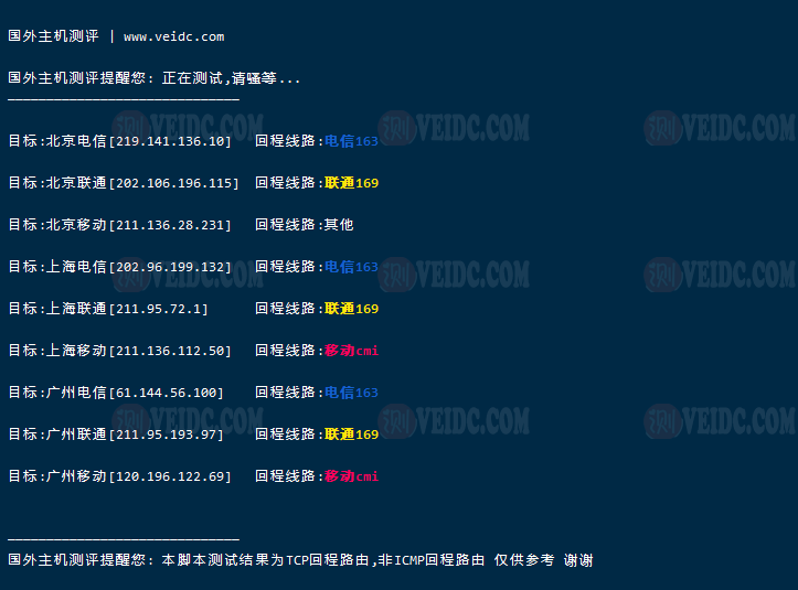 TCP回程路由测试: