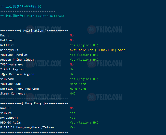 流媒体解锁测试: