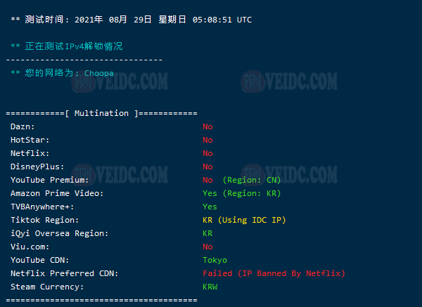 Vultr的韩国机房VPS,解锁查询结果如下图所示: