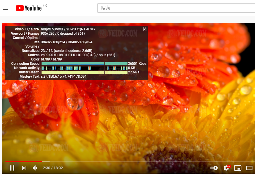 没想到法国的还不错,可以流畅的观看4K视频 。