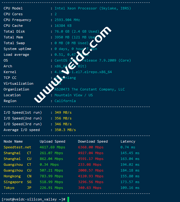 相比其它机房,硅谷机房的I/O差实差了一些。
