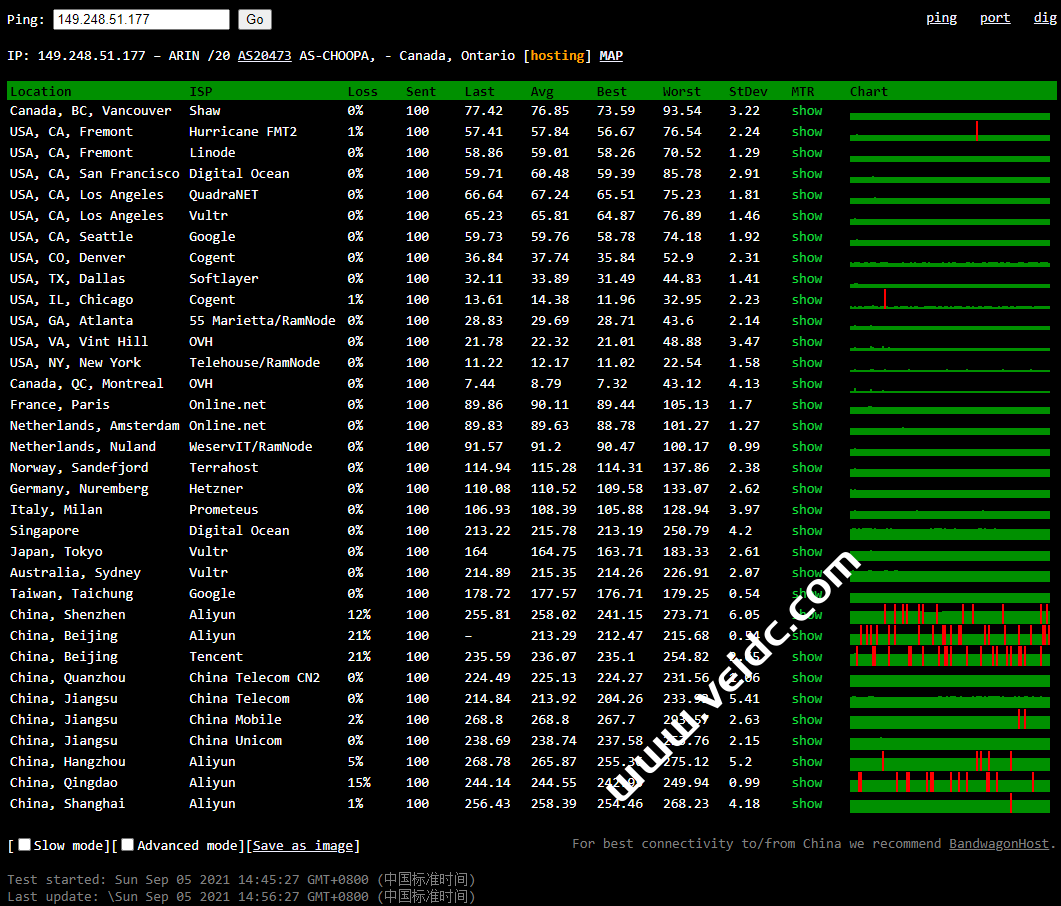 - 加拿大多伦多:tor-ca-ping.vultr.com